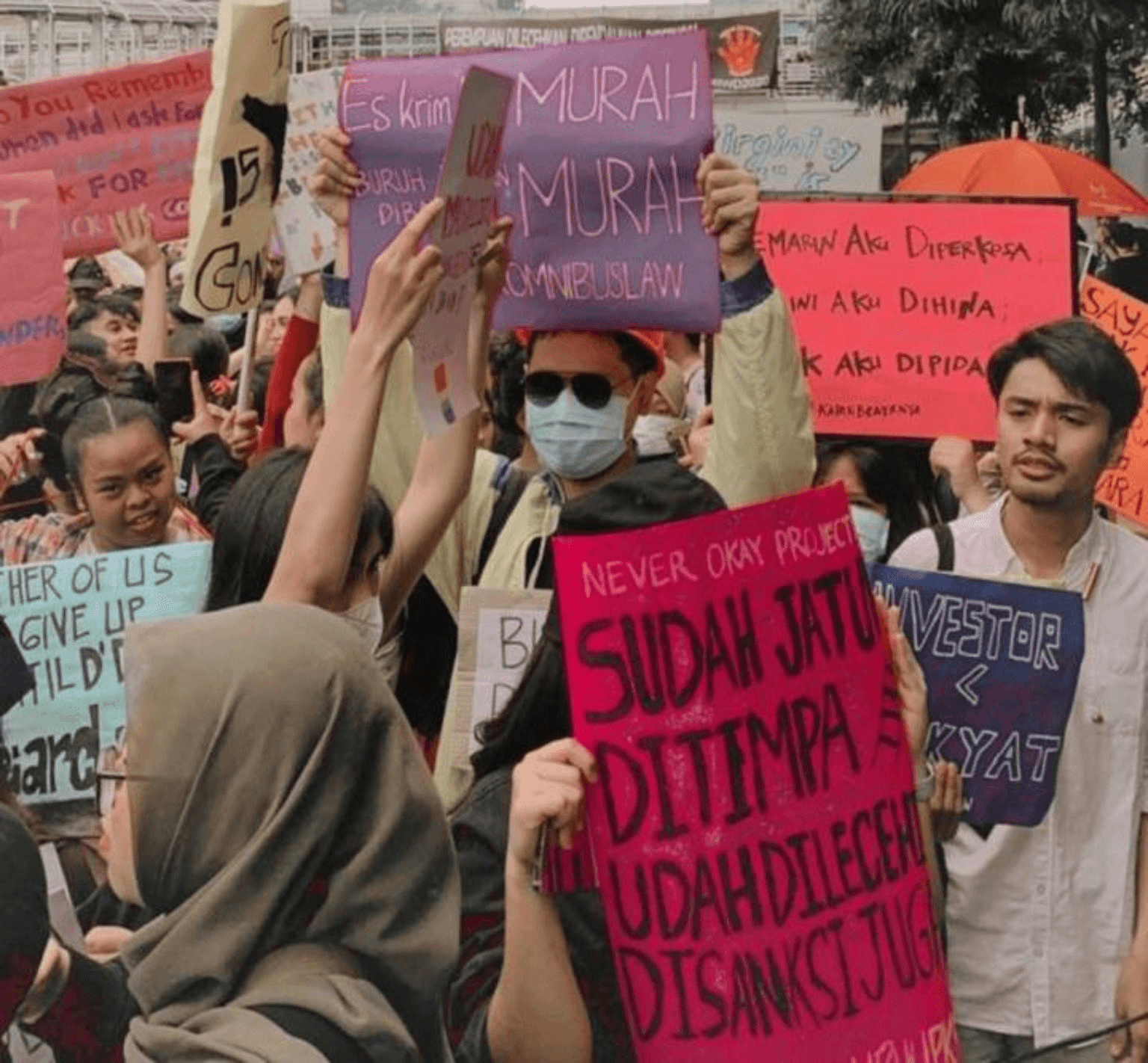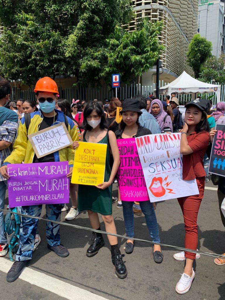 Berangkat dari kesadaran kolektif dan keresahan bersama, tim Never Okay juga ikut turun menyuarakan berbagai tuntutan, di antaranya #TolakRUUHaLu, #TolakOmnibusLaw dan #SahkanRUUPKS. Biar lebih menjiwai, salah satu anggota kami juga ada yang pakai kostum buruh pabrik, lho.