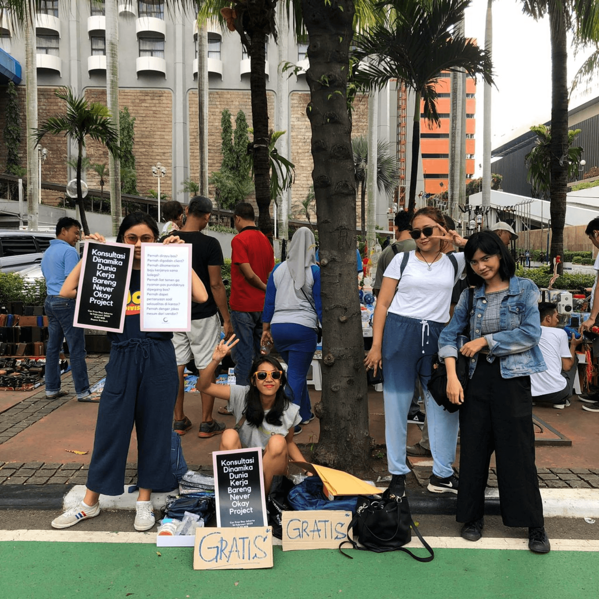 Pada tanggal 16 Februari 2020, tim Never Okay Project membuka “Konsultasi Dinamika di Dunia Kerja” di Car Free Day Jakarta. Selain membuka jasa konsultasi secara gratis, tim Never Okay Project juga melakukan sosialisasi kampanye #TemanKerjaAsik yang didukung oleh Campaign.id.