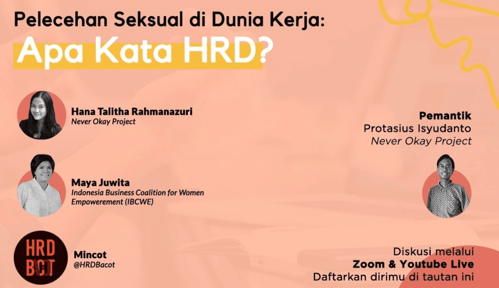 Maya menegaskan bahwa seorang HRD harus bisa dipercaya. Beliau melanjutkan jika pelecehan seksual masih kerap terjadi di dunia kerja karena kurangnya kesadaran akan isu ini di kalangan industri. Hingga saat ini, organisasi yang dikenal dengan sebutan “ibu cewe” ini masih gencar menyuarakan pentingnya kesetaraan gender dalam dunia kerja untuk menghindari kasus pelecehan seksual dan terus berkolaborasi dengan Never Okay Project sejak 2018.