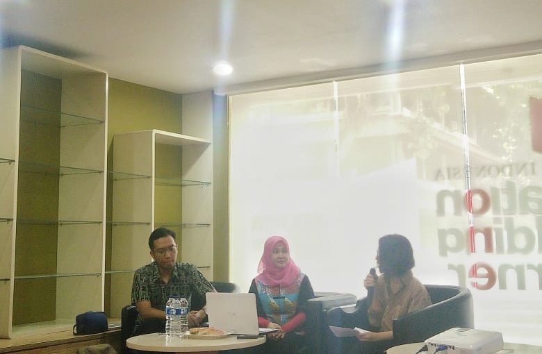 Imelda Riris, Program Manager dari Never Okay Project menjadi narasumber dalam salah satu sesi bincang-bincang...